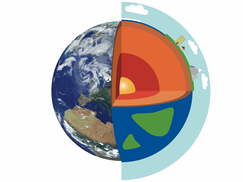 In diesem kosmischen Umfeld ist der Erdkörper ein dynamisches System, das sich in extremem Zeitraffer betrachtet ständig wandelt. Das Erdinnere kühlt seit der Entstehung des Planeten ab. Schwere Elemente reichern sich kontinuierlich im Erdkern und leichtere an der Oberfläche an. Die durch diese Energie- und Stoffströme getriebene Dynamik erhält beispielsweise das Erdmagnetfeld, welches uns vor der (vornehmlich von der Sonne kommenden) Partikelstrahlung schützt (Seite 109). Sie führt außerdem zur Plattentektonik (Seite 103), aufgrund derer sich die Kontinente auf der Erdoberfläche bewegen. Erdbeben und Vulkanismus sind Konsequenzen dieser Bewegung, die das Leben der Menschen beeinflussen.
