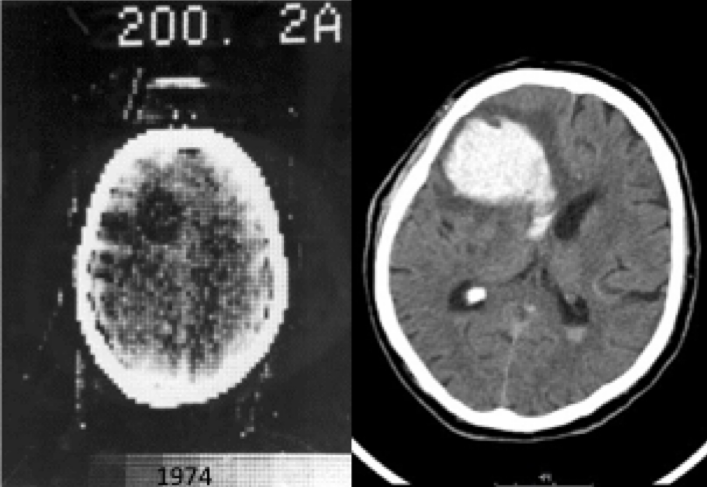 Der EMI Mark I, der 1972 in Betrieb genommen wurde, erzeugte erstmals Querschnittsbilder des menschlichen Kopfes. Der Tomograf arbeitete auf Basis von Röntgenstrahlen, die den Körper aus verschiedenen Richtungen durchstrahlten und von Detektoren auf der gegenüberliegenden Seite aufgezeichnet wurden. Der Computer berechnete aus diesen multiplen Projektionsdaten detaillierte Schnittbilder. Die Erfindung war eine Sensation: Bereits 1979, also sieben Jahre nach dem ersten klinischen CT-Scan, erhielten Cormark und Hounsfield den Nobelpreis für Medizin.